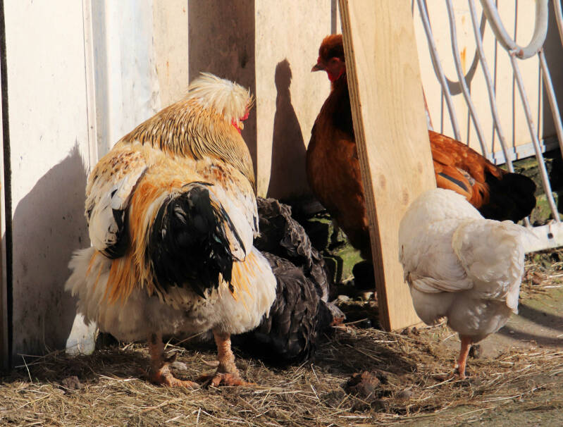 Maar eerst een ontmoeting met deze Haan die op zijn kippetjes past